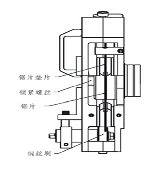 安裝鋼絲刷時(shí)必須保證對(duì)準(zhǔn)圓鋸片。