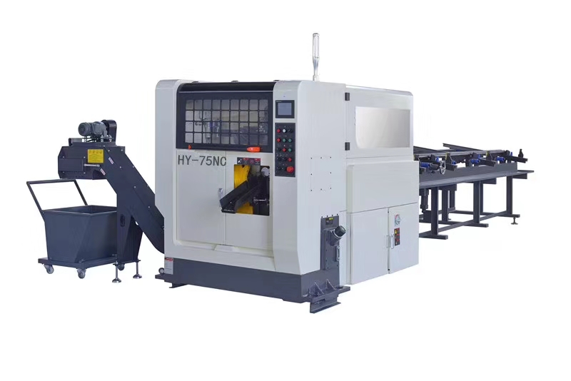 設(shè)備具有全自動入料,送料功能、材料鋸切長度誤差,可控制在±0.10mm、材料鋸切完成時尾料有后退功能(不會擦傷鋸片延長鋸片使用壽命提高20%)