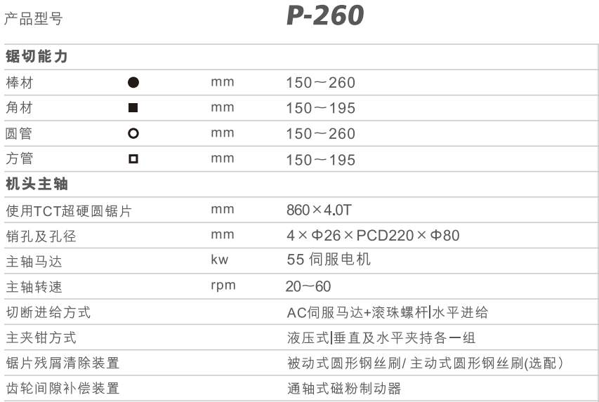 合一P-26型高速金屬切斷加工設(shè)備詳細(xì)參數(shù):